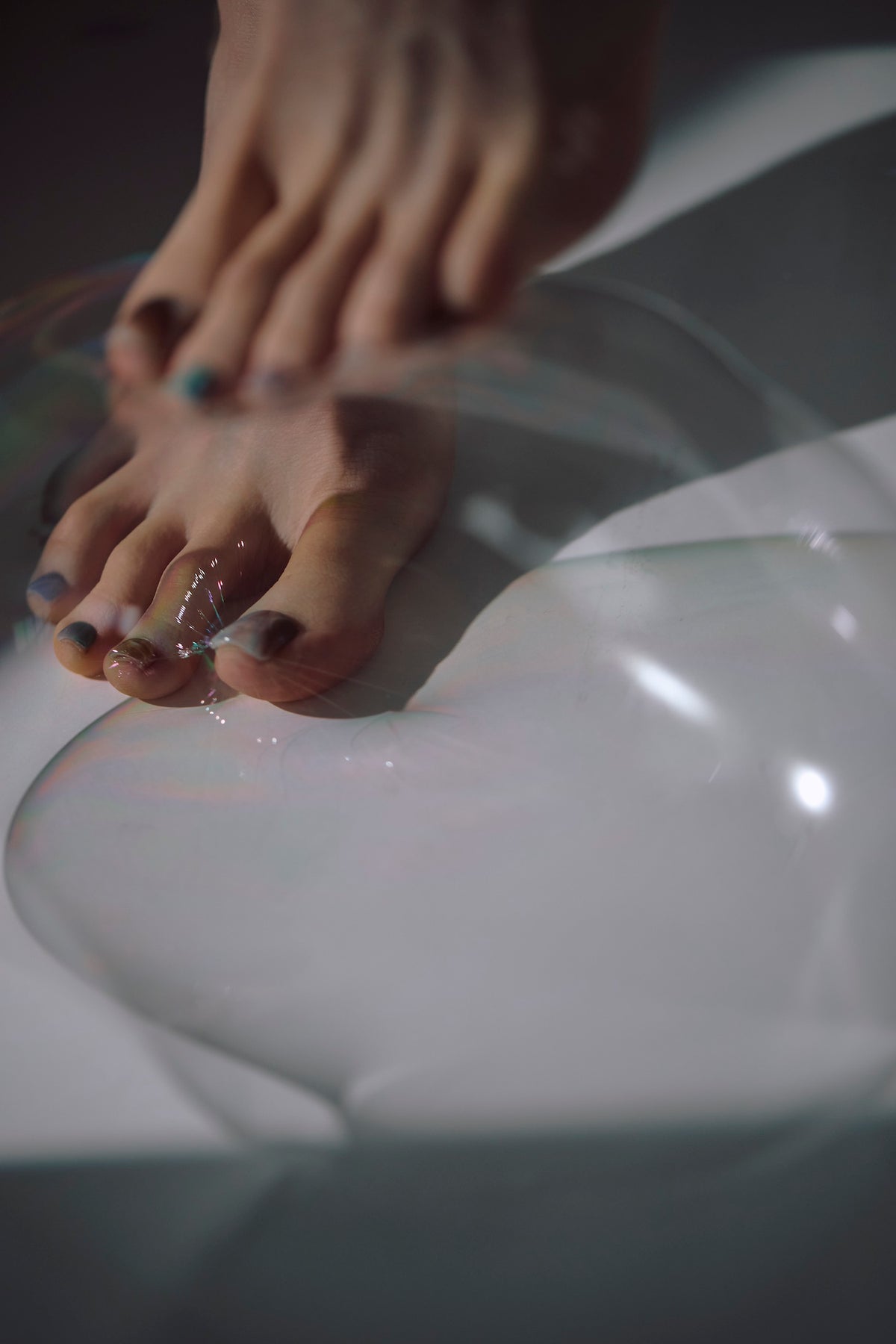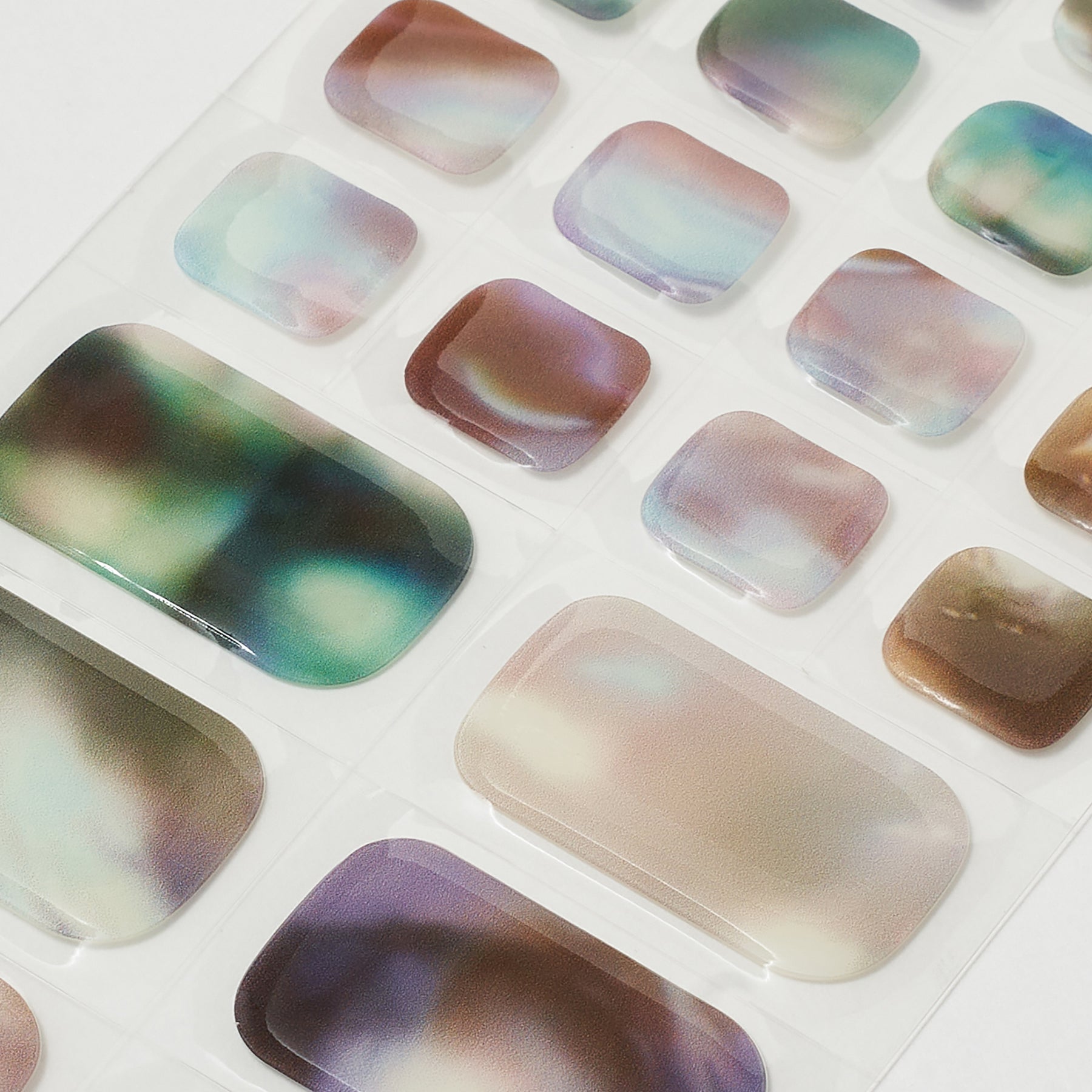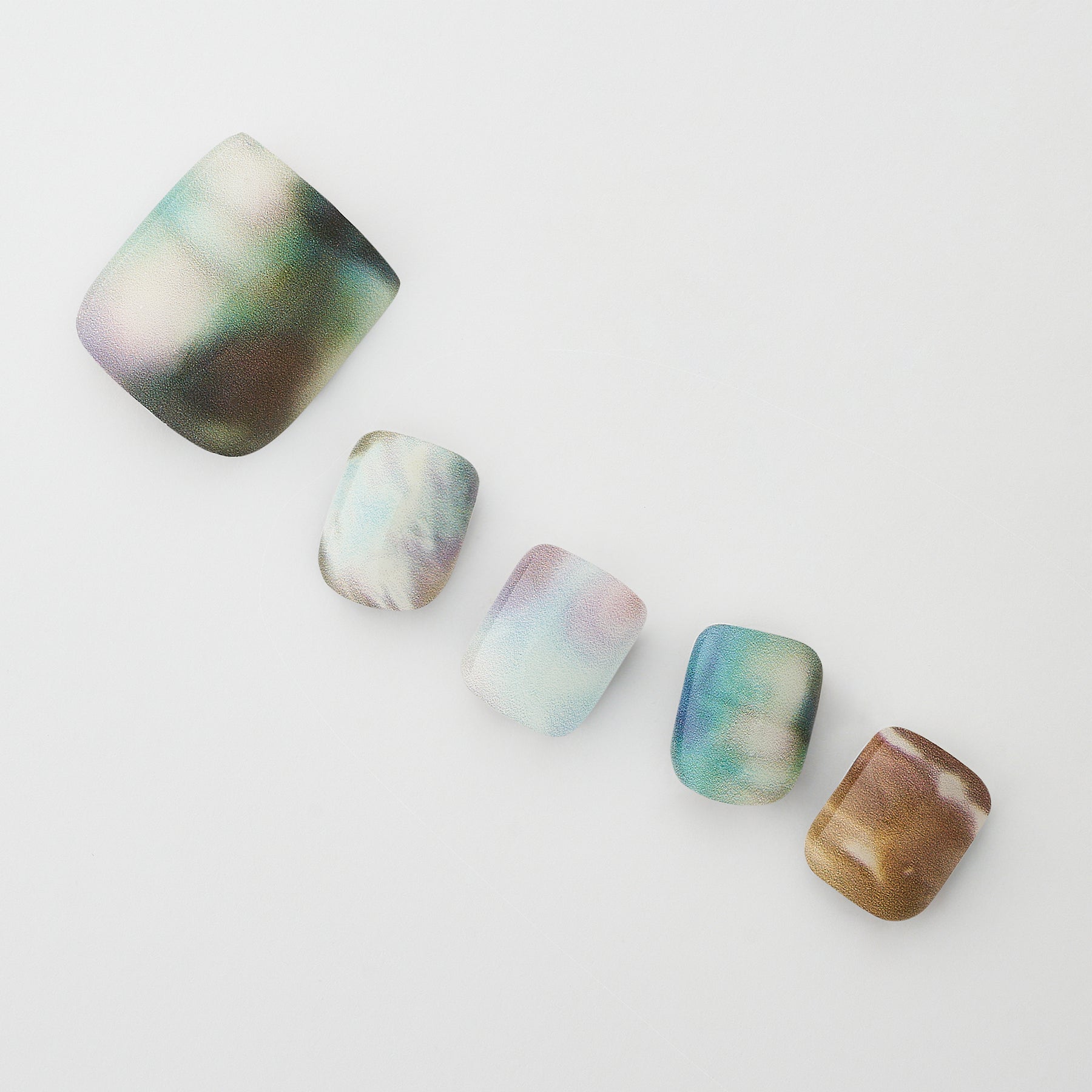 寒い夜空にたゆたうオーロラのような幻想的な色合い。冬のフットネイルは、この特別感あふれる輝きを、誰のためでもない、あなた自身のために楽しんでください。