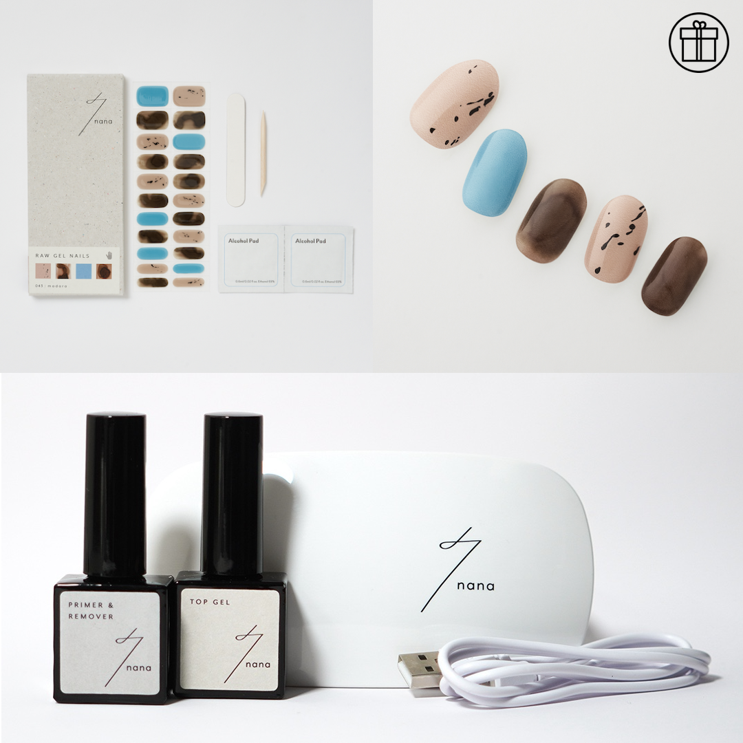 043シールと、スターターキット(LEDライト、トップジェル、プライマー&リムーバー)をセットにしました。